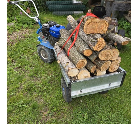 1. вмещает в себя 24 совковых лопаты (пр-во Верхний Бор СССР) песка, (для сравнения одноколесная тачка Лебедянь 8-10 лопат, иначе тяжело тащить по даче). давайте считать 1 лопату за 10 кг песка. и немного округлим в сторону уменьшения результат - пусть будет 1 тележка 200 кг. 2.уверенно идет весной (май) с полным грузом по вспаханному осенью (сентябрь) полю (картофельному, дачники поймут) передним ходом 3.в особо ограниченных условиях и пространствах (напр, малина) едем задним ходом (идем тоже задним ходом). в тропинках шириной 95-100 см. уверенно с полным грузом едем передом. а вот пустой прицеп ерзает, трудно им управлять. 4. управлению привыкаешь 30 минут. 5.за 30 минут перевозишь тонну песка 5 тачек примерно по 200 кг. (если глушишь мотоблок) и 20 минут на тонну песка, если мотоблок не глушить во время загрузки. а потом 10 мин. перекур и вроде как жив снова. 6. машину песка Камаз нового образца кузов я перевез (участок 10 соток 25*40 метров, песок в 5 метрах за забором) за 10 вечеров, истратил около литра бензина (Ока, 9 л.с.) - методика измерения. залил 3 литра под метку. вывез песок, долил около литра (1,05-1,1 литра) снова под метку. и это на прожорливой Оке!!!