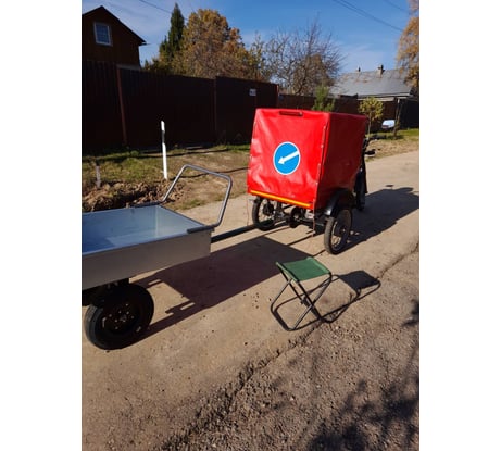 Вместительный прицеп, кузов опрокидывается для разгрузки, быстросъемный задний борт.