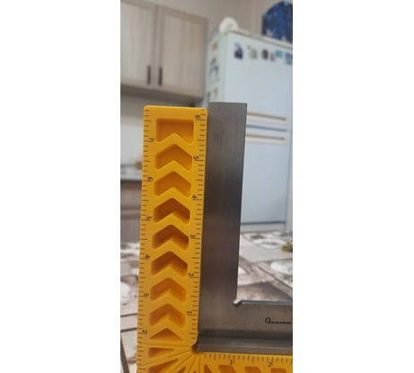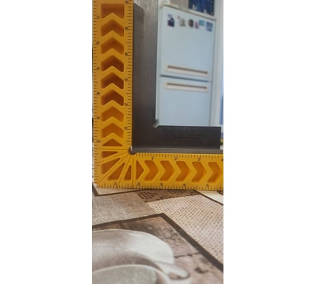 Хороший толстый угольник, особенно для тех, кому лень делать подобные из фанеры толщиной 21мм. Погрешность угла минимальна. Отлично подходит для сборки изделий с небольшими, до 70-100см, деталями. При больших размерах изделия угольник начинает гулять. Непонятно для чего сделана дюймовая разметка - неужели это так востребовано? Хотя сомнительно, что кто-то приобретает эти угольники для измерений и разметки, так что на функционале это никак не сказывается.