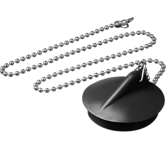 Пробка для ванн, раковин СУПРИМПЛАСТ черная, диаметром 40 мм, с латунной цепочкой 50 см 1DVR40_01_02Z50H используется для перекрывания слива воды в раковине или ванне. Плотно садится в полость сливного отверстия и выдерживает большой объем воды.