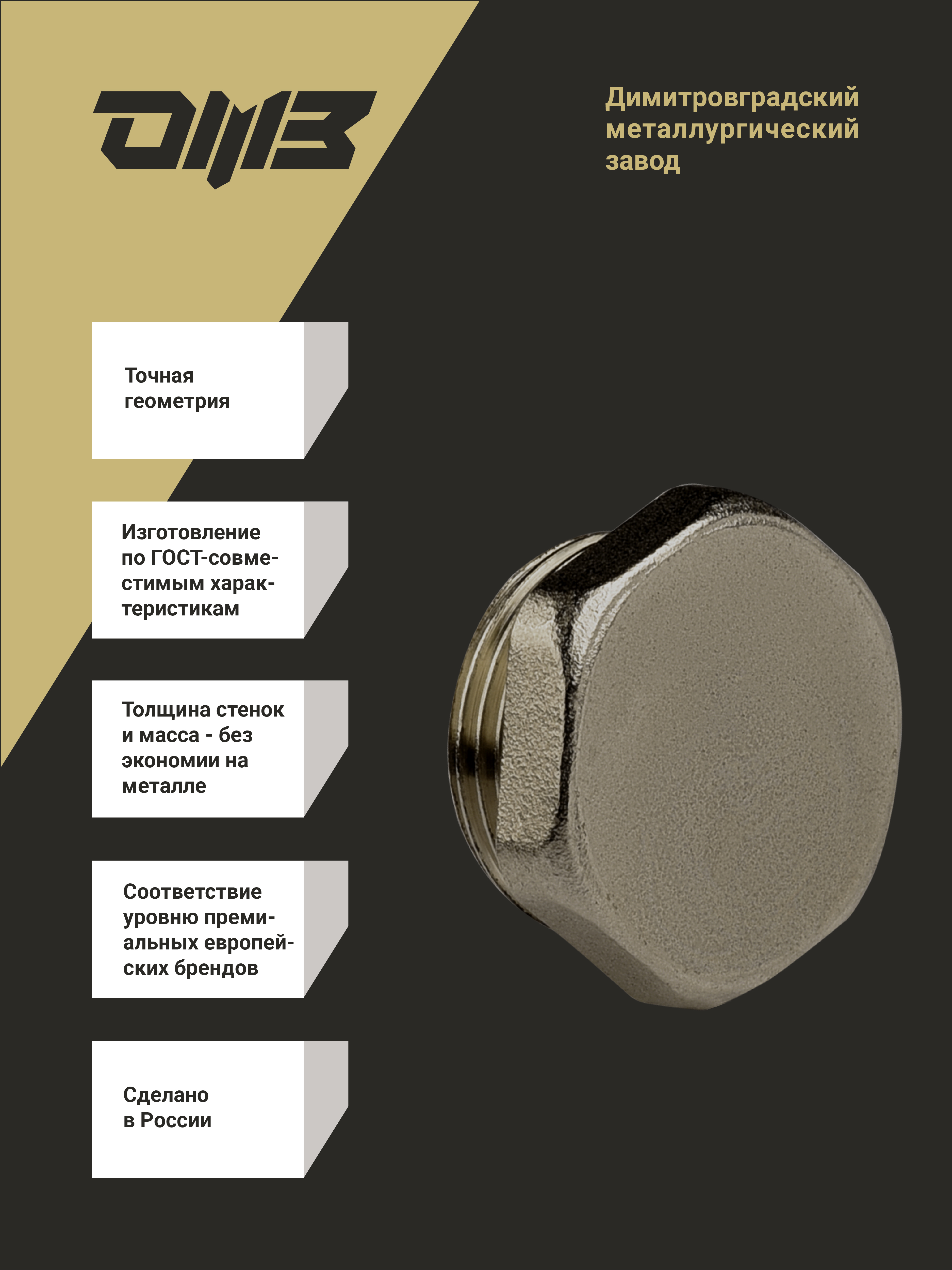 Пробка ДМЗ DN15 (1/2") НР латунь никель (упаковка 3 шт) ДМЗ.003.15Н3