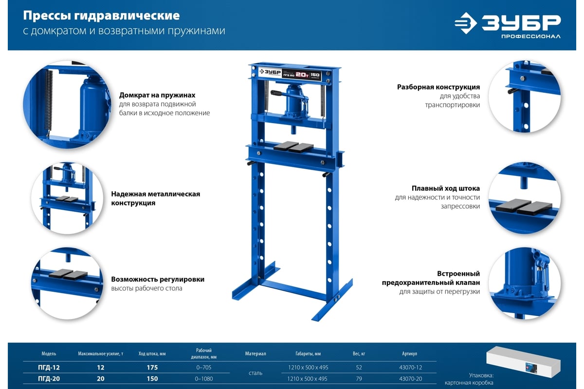 Преимущества гидравлического пресса ЗУБР Профессионал ПГД-20 43070-20