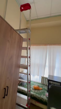 В целом достаточно неплохая стремянка, но очень печкает руки, за это и снижение оценки, для чистовых работ не годится, особенно со светлыми поверхностями, за такие деньги должна быть анодированная, выход простой, все заклеил малярным скотчем, но повторюсь за эти деньги нн гоже таким колхозом заниаться