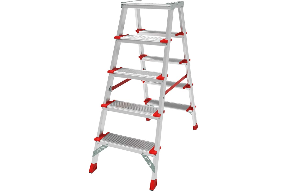 Профессиональная стремянка Новая Высота NV3127, 2x5 ступеней 130 мм, площадка 350x260 мм, Max нагр. 225 кг, 2К башмаки, 3127205