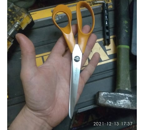Работаю на швейном производстве где нам выдали такие ножницы. После почти года плотного пользования подзатупились. Купил точилку для ножниц и такие же ножницы для тещи домой(она у меня швея). Прошло полтора года, а ее восторгу нет придела до сих пор! Чуть подправил свои рабочие ножницы на точилке и опять полгода режут на "ура" любую ткань! Я очень доволен знакомством с продукцией Fiskars. На мой взгляд такое качество и удовольствие от работы таким инструментом стоит своих денег!