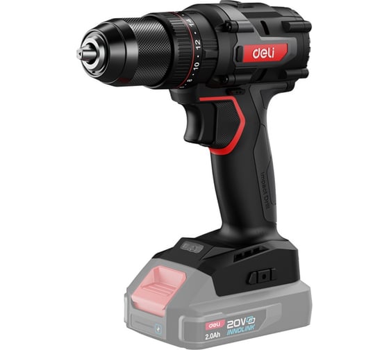 Дрель-шуруповёрт аккумуляторная ударная Deli DE-CZ20-1 20 В Мощный и универсальный инструмент для профессионалов и интенсивной работы Идеален для закручивания шурупов, сверления дерева, металла, бетона и кирпича