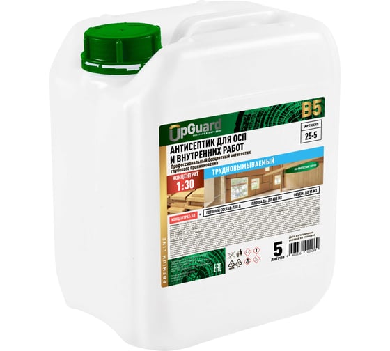 Профессиональный бесцветный антисептик глубокого проникновения для внутренних работ UPGUARD B5 5л, концентрат 1:30, срок защиты до 40 лет 25-5