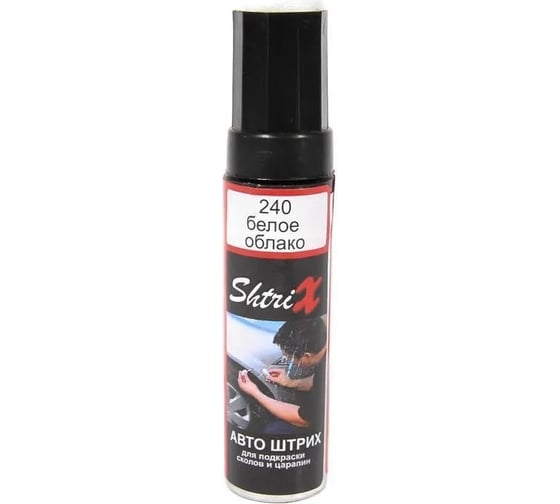 Профессиональный карандаш для удаления сколов и царапин Аэрохим Shtrix Белое облако LADA 240 используется для косметического ремонта автомобиля по кодовому номеру. Быстросохнущая. Подходит для удаления царапин, сколов и остальных видов повреждения кузова.