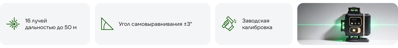 - Профессиональный лазерный уровень с двумя вертикальными и двумя горизонтальными лучами в 360 градусов (Вкруговую)