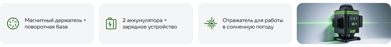 - при помощи приемника (отражателя) лазерных лучей (приобретается отдельно) можно работать в солнечную погоду