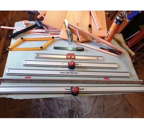 Как набор приобретение бестолково, а сами изделия шедевральны. Линейки могут стать шиной хоть на три метра (1.2+1.0+0.8), прогиб в местах соединений неощутим. Струбцины держат, зажимает хорошо, из Т-паза не выскакивает. Угольник дискретный в этом наборе не лучшее решение, но мне по сути он не нужен, у меня другие есть. Направляющая каретка для лобзика работает если ваш лобзик не заваливает рез. Скил у меня не подружился, Крессом опиливать ровно получилось- не надо сильно прижимать - веди и веди.