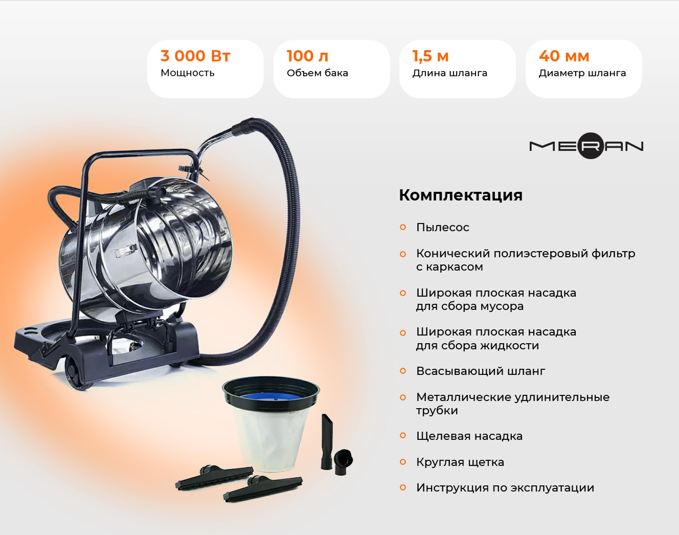 Профессиональный пылеводосос MERAN 3000 Вт 100lVC-3/100T R 100339073