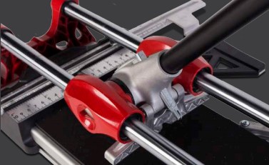 Раздвижные алюминиевые опоры предусмотрены для лучшей устойчивости керамики большого формата. Рукоятка рычага изготовлена из биматериала для большей эргономичности и удобства захвата.