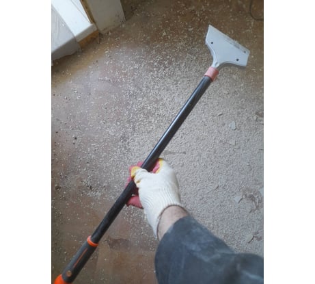 Удобная прочная рукоятка, длина отличная. Ободрал старую шпаклевку со стены.