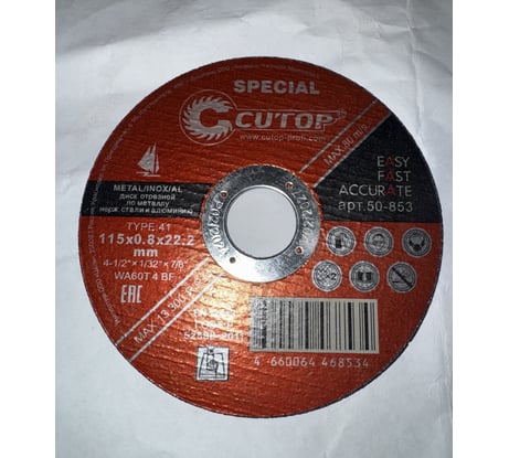 Профессиональный диск отрезной по металлу, нержавеющей стали и алюминию Special, Т41-150x1.2x22.2 мм CUTOP 50-866