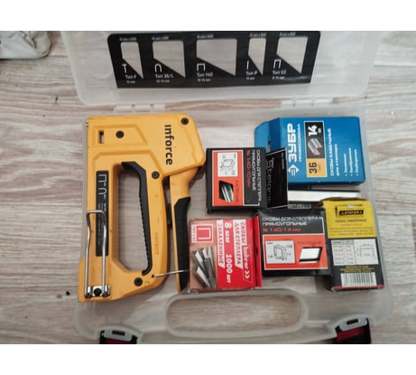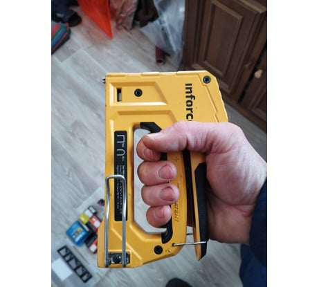 - Профессиональный степлер 6 в 1 Inforce 06-14-07 имеет смотровое окошко для контроля за количеством оснастки в магазине.