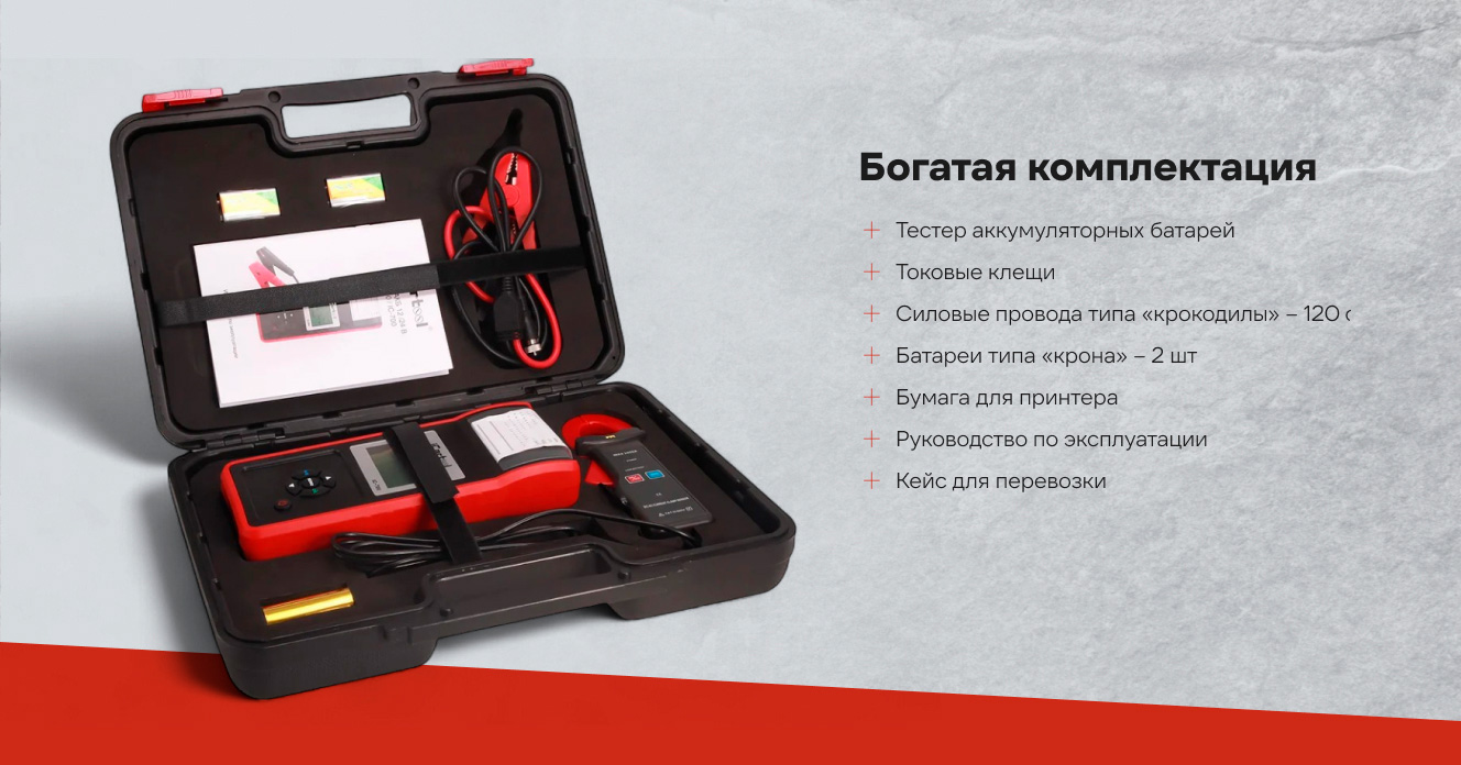 - Защищает от неправильного подключения прибора, обратная полярность подключения не приводит к поломке тестера и не оказывает негативного влияния на АКБ.