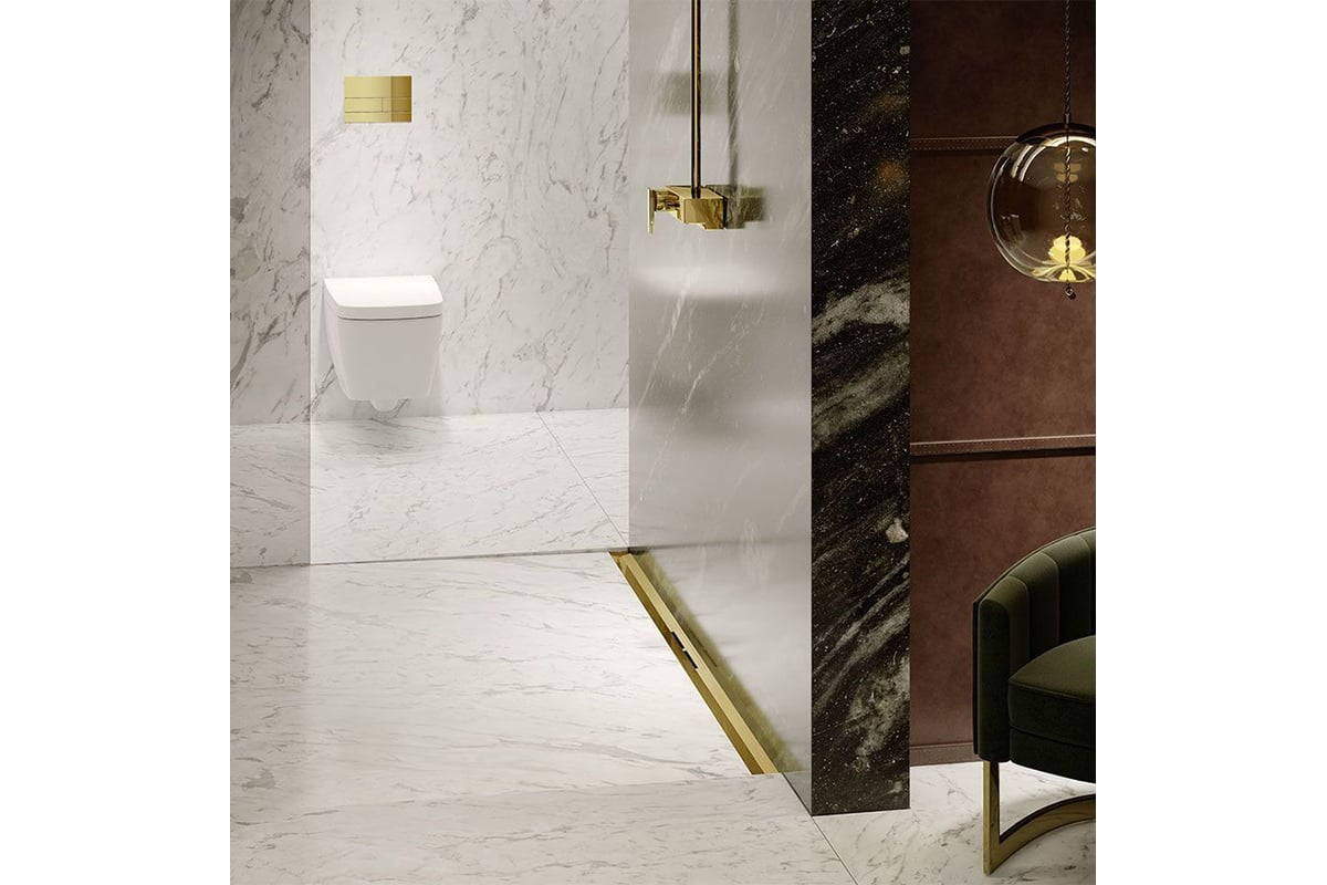 Профиль для душа TECE 1200 мм 671212 выполнен из нержавеющей стали, монтируется на плиточный клей над бетонной стяжкой и уплотнением.