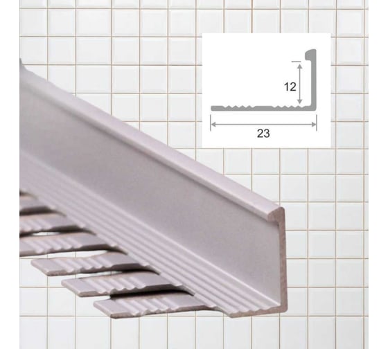 Профиль для плитки алюминиевый Г-обр. ООО ЭлитПроф АКГ 12, длина 2,7м серебро/мат. АКГ 12 АС
