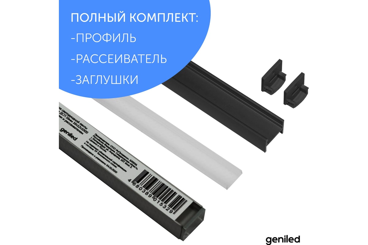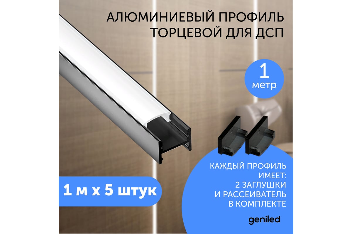 Профиль для светодиодной ленты geniled алюминиевый, торцевой, для ДСП, 1 метр, 5 шт, черный 12135b_1_5