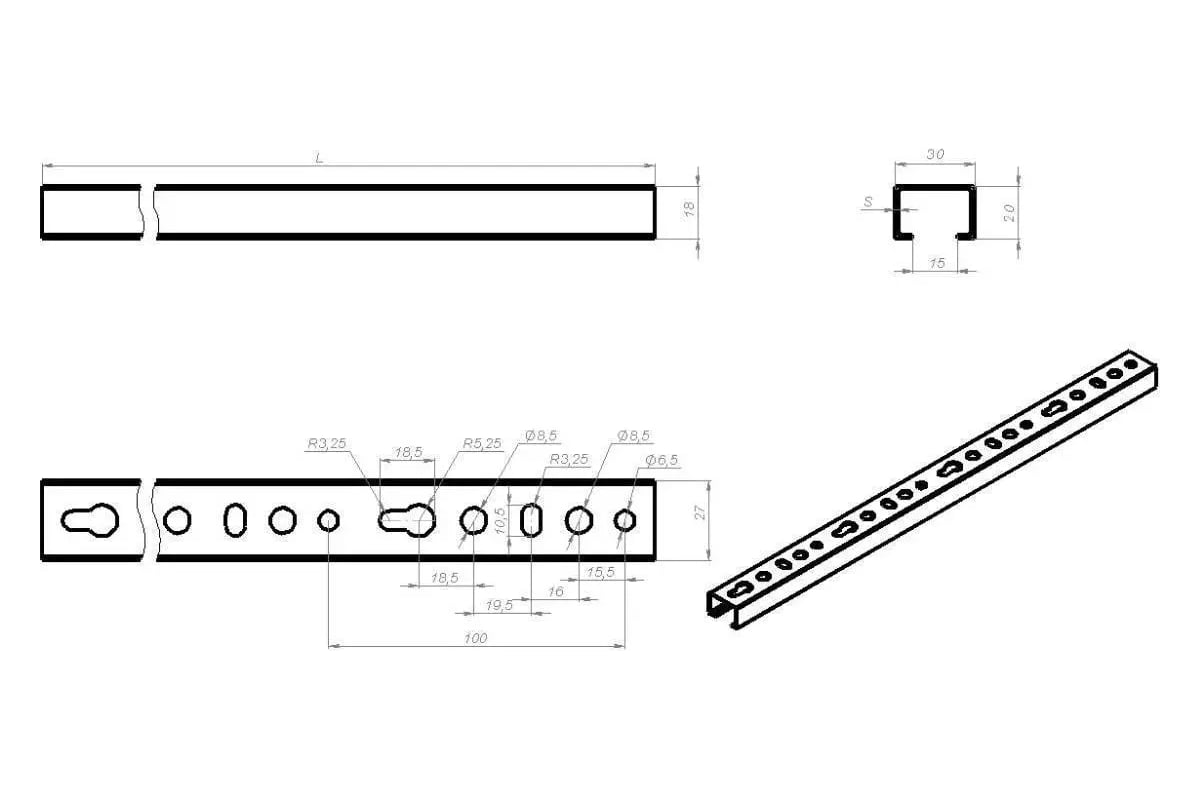 Профиль перфорированный С-образный CABLIDERTRAYS оцинкованный, (перфорация груша CabLiderRapid) ПЛ-С(г)-30х20-2,0-3000
