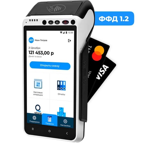 Современный смарт - терминал совмещает в себе чековый принтер, сканер штрих-кодов, встроенный банковский терминал.