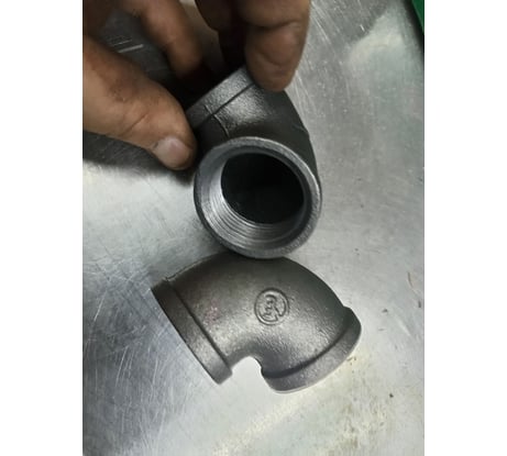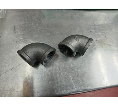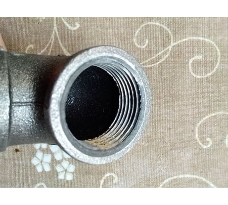 Равномерная толщина чугуна по всей площади уголка, нет заусенцев и наплывов, характерных для колхозных отливок, резьба чистая.
