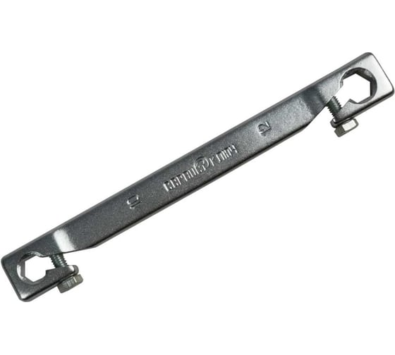 Инструмент состоит из длинного металлического стержня с двумя разными размерами зажимных головок - 10 и 12 мм, что делает его универсальным решением для различных моделей автомобилей. Головки имеют открытую форму, предназначенную для ослабления или затяжки гаек или болтов в труднодоступных местах. Также приспособление дает возможность проведения работ с сорванными гранями.