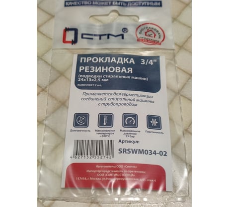 Вопросы и ответы о СТМ 3/4", резина, 24x13x2.5 мм