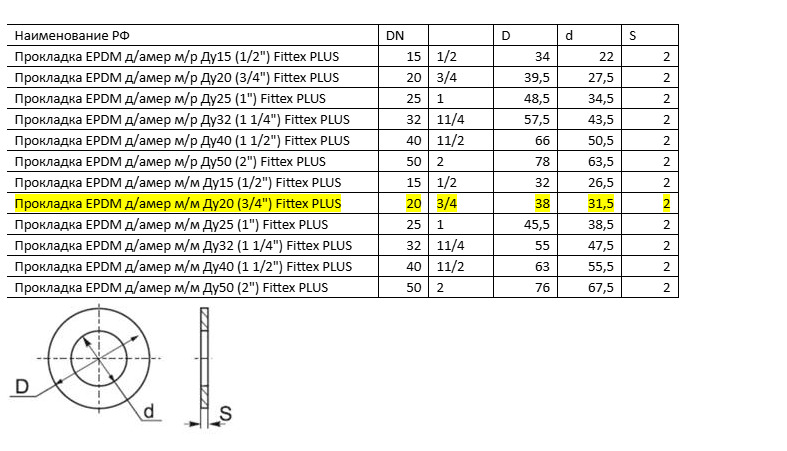 Прокладка Fittex PLUS EPDM, для американки, м/м Ду20, 3/4" 108-1728