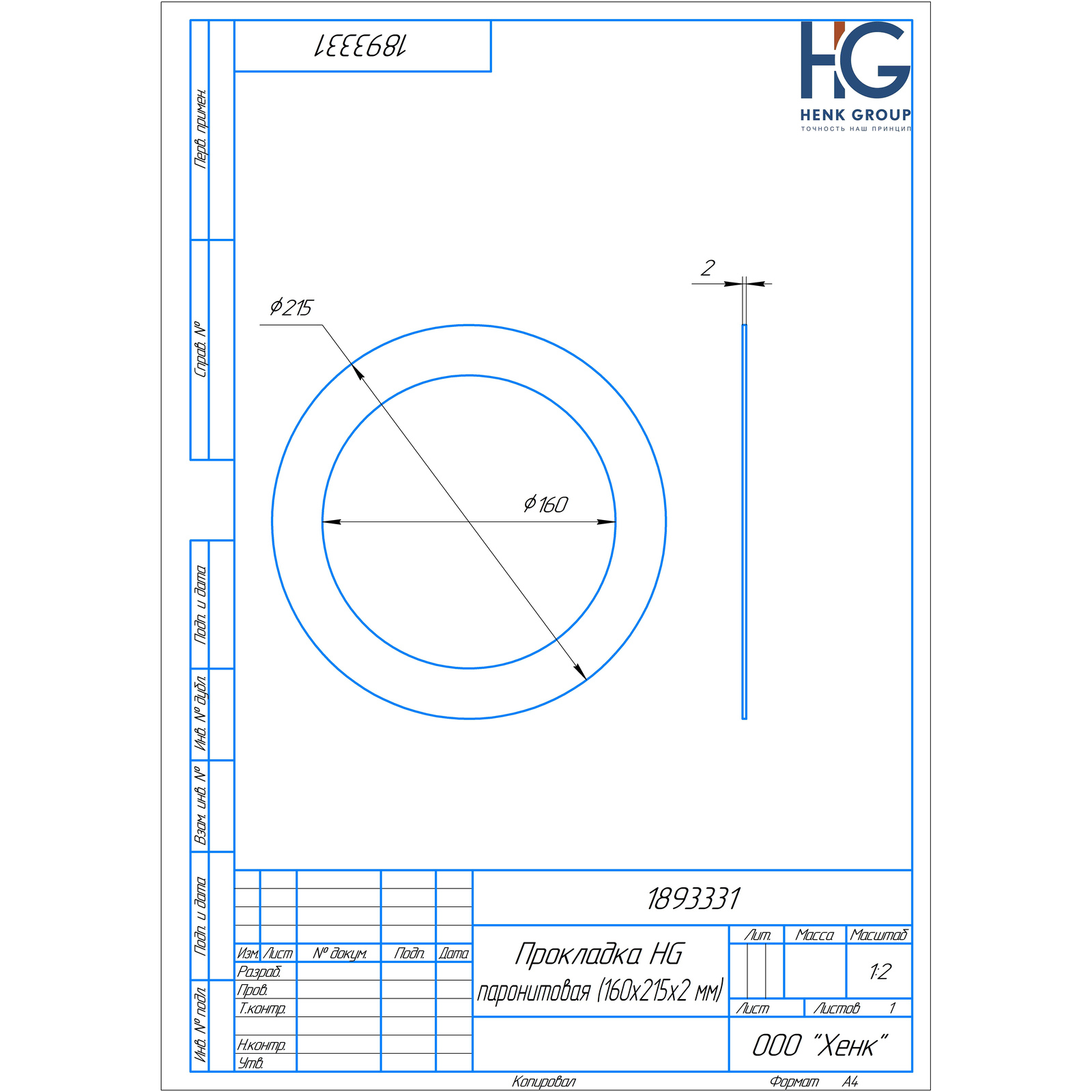 Прокладка HG паронитовая 160x215x2 мм, 2 шт 1893331