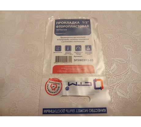 Отзывы о прокладке СТМ 1/2", фторопласт, 19x10x2 мм, 3 шт SFSWC012-03