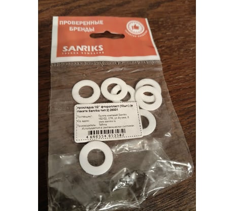 Прокладка Terma 1/2", фторопласт, 10 шт 28001