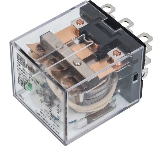 Промежуточное реле DEKraft 3 контакта с LED индикацией 10А 127В DC ПР-102 23925DEK