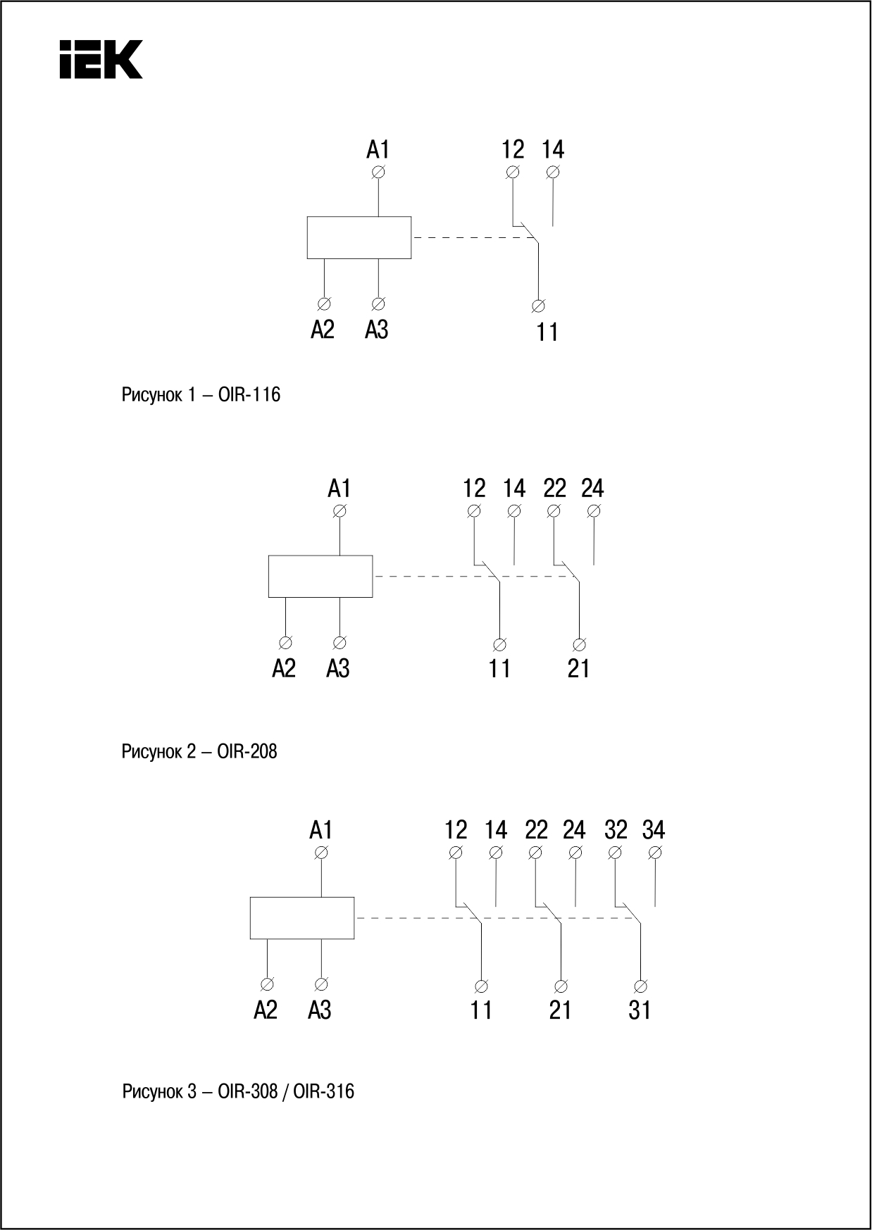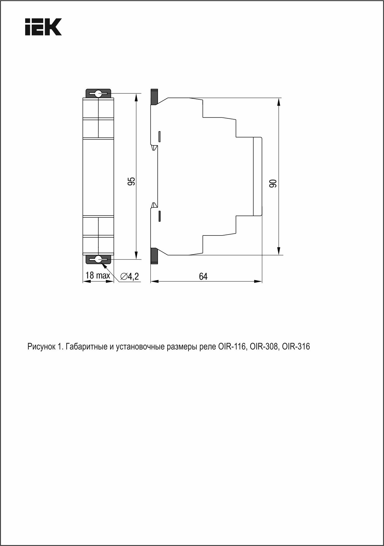 Технические характеристики IEK OIR 1 контакт 16А 230В AC OIR-116-AC230V