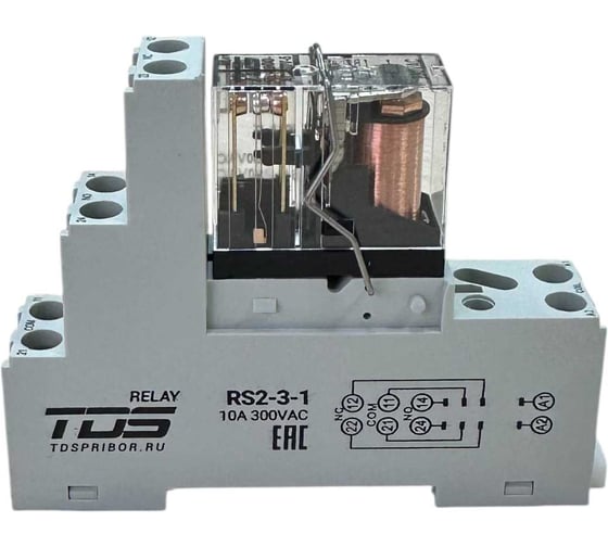Промежуточное реле с колодкой TDS RS2-3-1, 2 перекидных контакта, AC 230В/5А TDS32902
