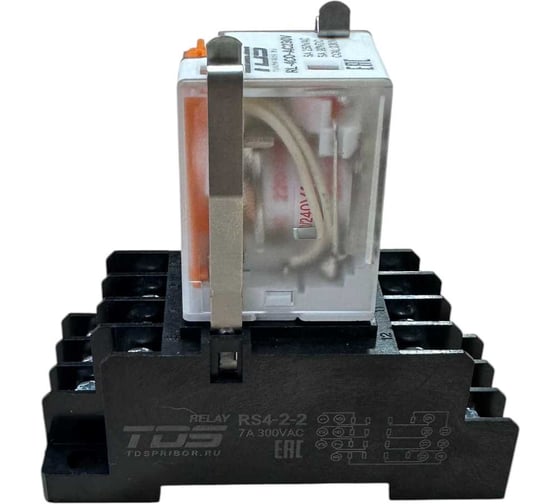 Промежуточное реле с колодкой TDS RS4-2-2, 4 перекидных контакта, AC 230В/5А TDS70205