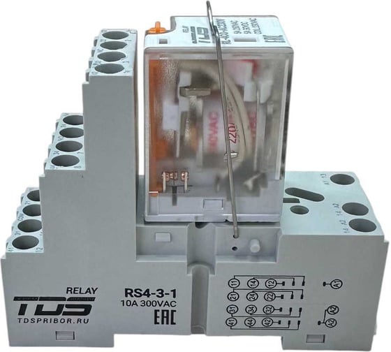 Промежуточное реле с колодкой TDS RS4-3-1, 4 перекидных контакта, AC 230В/5А TDS66093