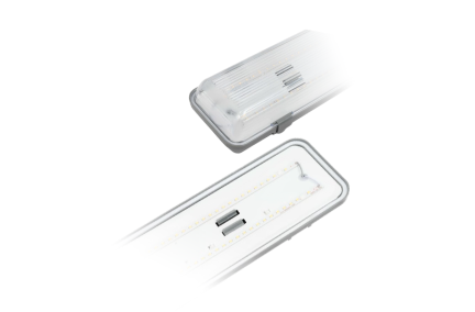 смонтировали 6 светильников для освещения склада, пока работают 4 месяца без нареканий. пластик самый обычный, не хлипкий. есть защита от пыли и влаги, не переживаю, что выйдут из строя.