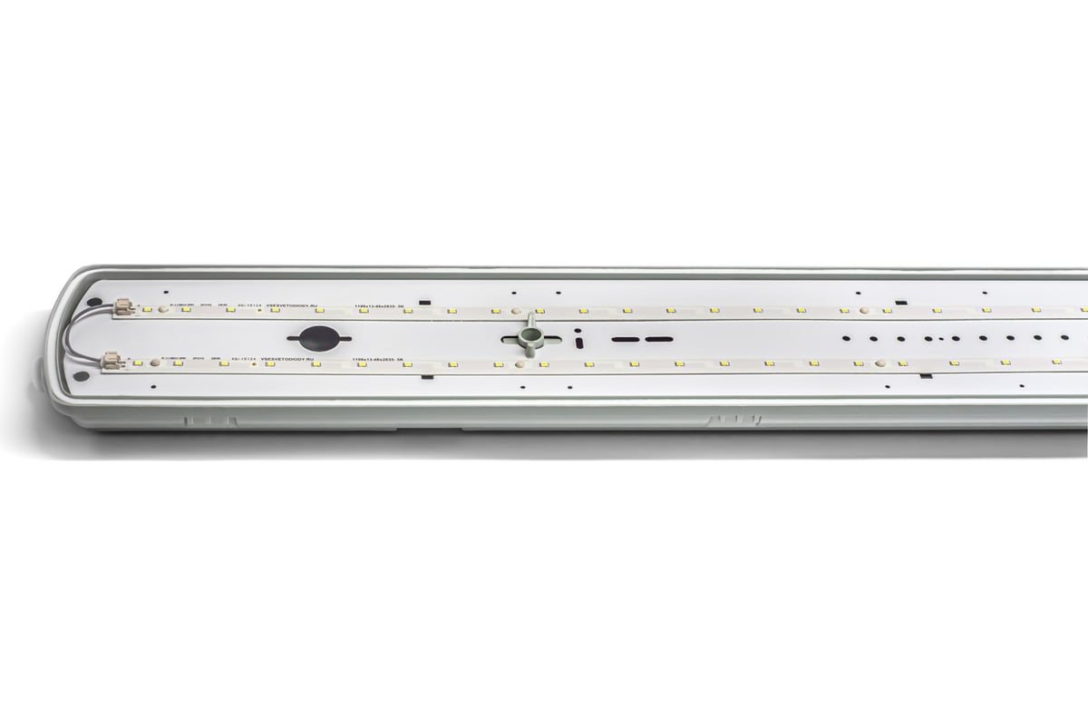 Промышленный светодиодный светильник ВСЕСВЕТОДИОДЫ Айсберг 40Вт, 5000Lm со степенью защитой IP65 устанавливается для освещения - магазинов, торговых залов и центров, административных и офисных помещений, аптек, цехов, производственных объектов, промышленных помещений, складов, подземных парковок, автомоек и других объектов. Линейный светильник подходит для накладного монтажа на горизонтальную и вертикальную поверхность, крепление в комплекте.