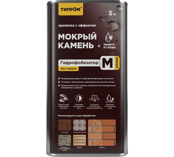 Пропитка с эффектом мокрый камень Ультра (без запаха) ТИПРОМ М для камня, кирпича, дерева (гидрофобизатор) 5 л RM000009898