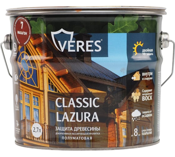 Пропитка Veres Classic Lazura №7 махагон 2.7 л 1/4 42020