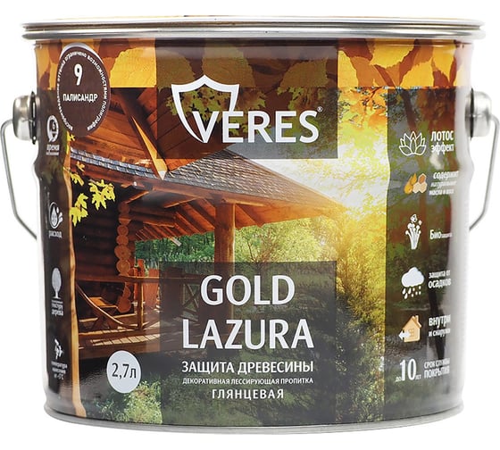Пропитка Veres Gold Lazura №9 палисандр 2.7 л 1/4 44937