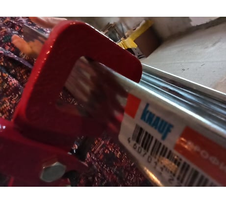 Усилие нужно прилагать очень значительное. Двумя руками ну очень трудно просечь 2 профиля кнауф 0.6мм