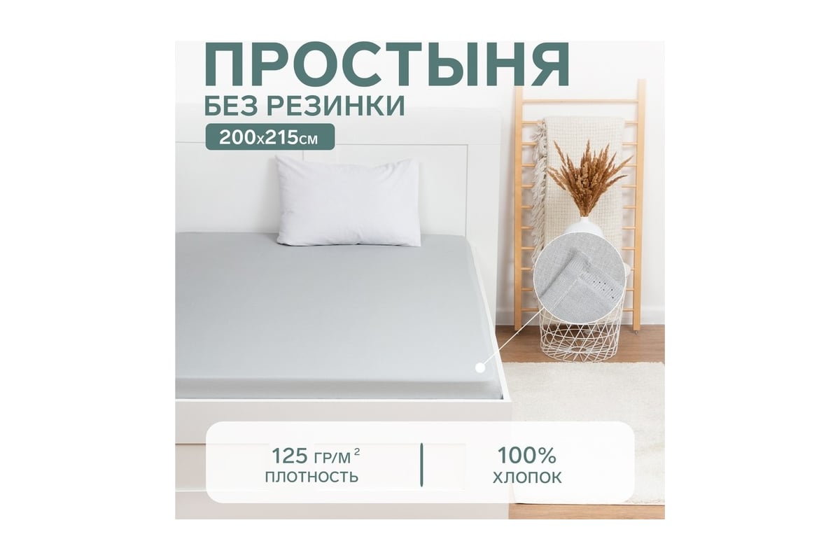 Простыня Этель 200x215, светло-серый, 100% хлопок, бязь 125 г/м2 9046043