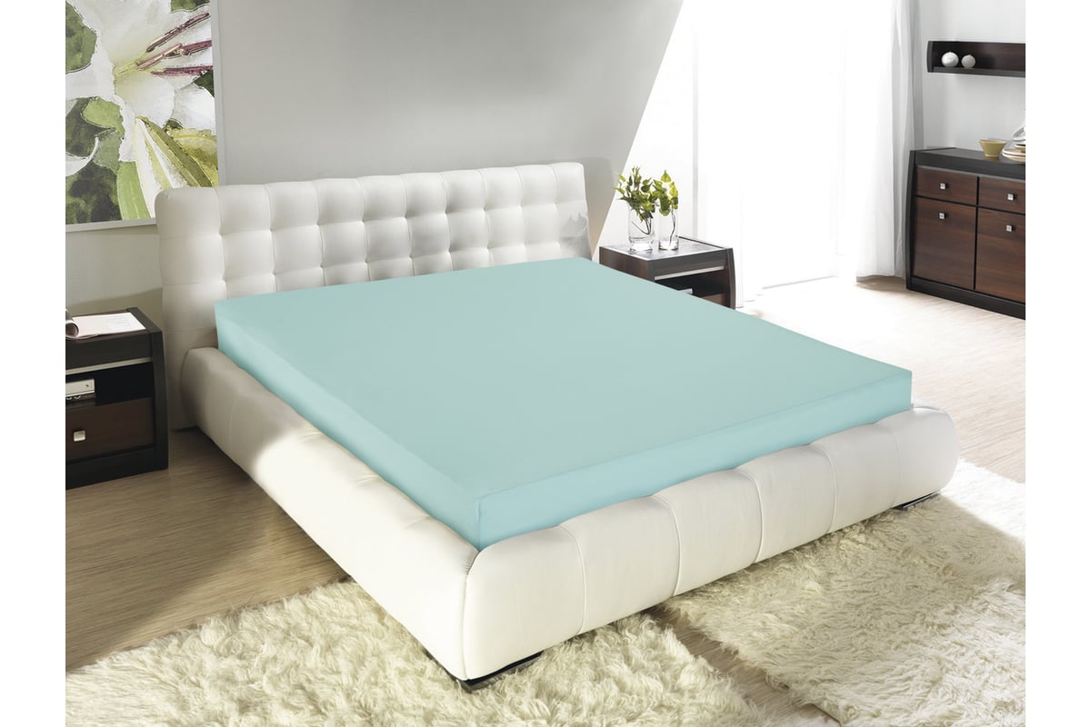 Простыня на резинке Guten Morgen ткань трикотажная, 125 гр/м, гладкокрашеная, мята, 160x200x20 см на резинке ПТм-160-200/125