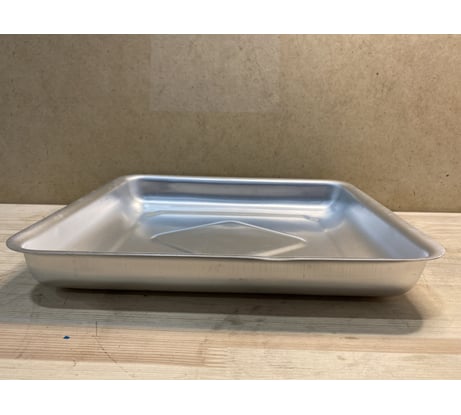 Толстый алюминий, очень гладкий не пригорает. Нашёл только на Всё инструменты т. к. духовка импортная оригинала в данный момент не найти а этот встал как литой очень доволен покупкой и цена радует спс магазину и Демидовскому заводу .