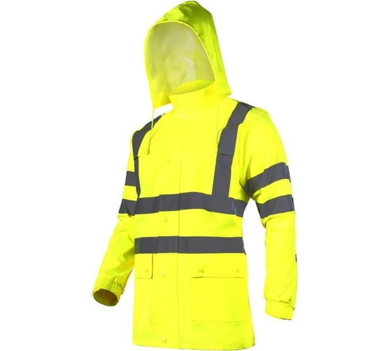 Противодождевая сигнальная куртка LAHTI PRO, желтая, размер S L4091301 обеспечивает высочайший класс видимости (класс 3). Произведена согласно европейскому стандарту EN ISO 20471:2013.
