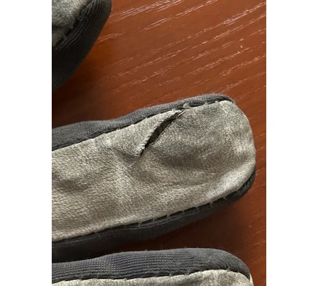 1. Они НЕ противопорезные, на фото видна дыра на ладони (фото 1) и порез до утеплителя на среднем пальце (фото 2). Первый еще ладно, случайно задел старый гвоздь, откуда второй- не понимаю, наверное о воздух. Фото 3- какчество швов. 2. Перчатки при размере 8/S на мою руку с размером 8/S еле налезают, прям в обтяжку. Манжеты настолько короткие, что заканчиваются там, где начинается запястье (фото 4). Зимой, когда идет снег, он засыпается внутрь, рукам становится холодно. Можно ли подшить эти манжеты? Можно, но так рассчитывает производитель; в реальности при подшитых манжетах перчатки практически невозможно натянуть на руки.