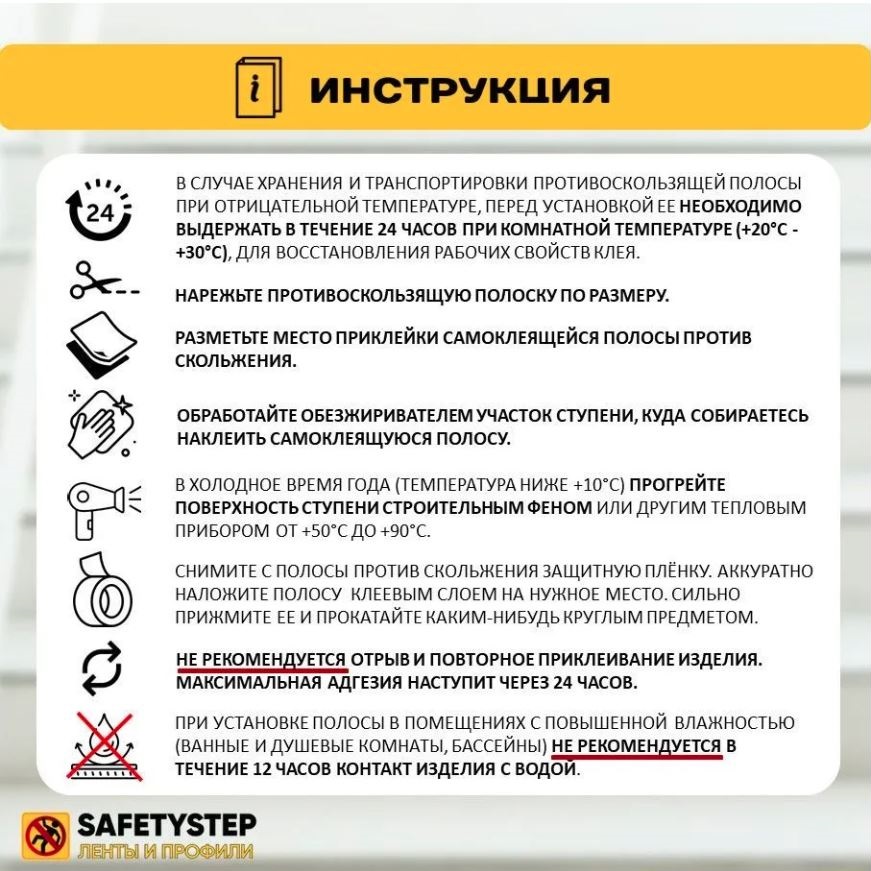 Долговечные, самоклеящиеся противоскользящие ленты. Самоклеящиеся ленты антискольжения разработаны в Европейском Союзе (ЕС). Противоскользящая самоклеящаяся абразивная полоса против скольжения для ступеней уменьшает количество несчастных случаев вызванных падением. Абразивная противоскользящая лента является декоративной и сигнальной отделкой и используется внутри и снаружи помещений. Не боятся влаги. Антискользящие ленты "Anti Slip Tape " - изготовлены из самоклеящегося полиэстера с нанесенным поверх слоем абразивных карборундовых крупинок. Абразивная полоска для ступеней легко и надёжно крепится к любым гладким поверхностям: керамическая плитка, гранит, дерево, металл, пластик, линолеум, ламинат и пр.